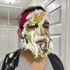 Pieguy3001 was surprised by Pieology with a big sloppy cream pie to the face