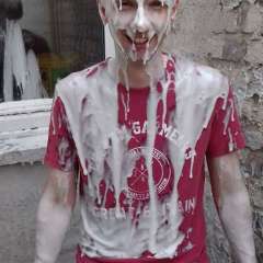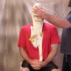 Michiganpie1 was surprised by SeymourTheClown with a big sloppy cream pie to the face